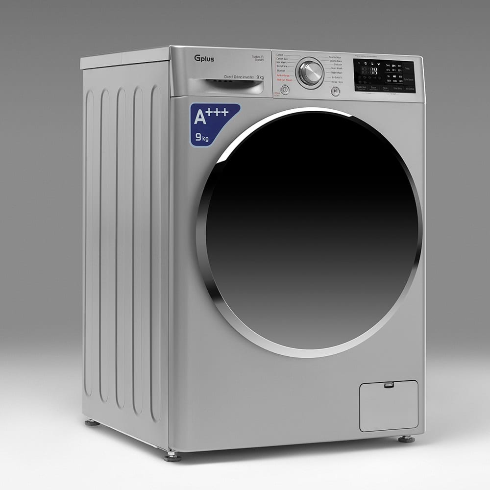 ماشین لباسشویی 9 کیلویی جی پلاس مدل GWM-R99S با رنگ استیل، موتور پیشرفته Direct Drive Inverter و رده انرژی +++A تولید و به بازار عرضه میشود.
