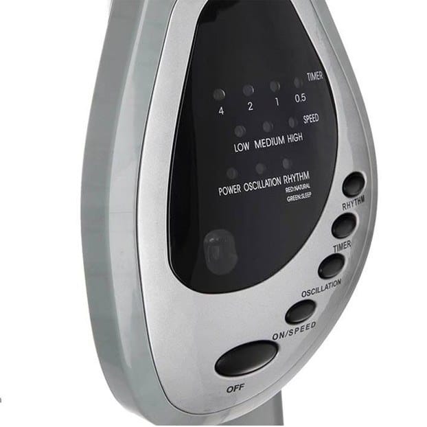 ریموت کنترل حرفهای: امکان تنظیم سرعتهای مختلف، تایمر خاموشی 7.5 ساعته با فواصل 0.5 ساعته و حالت وزش ریتمیک برای شبیهسازی نسیم طبیعی